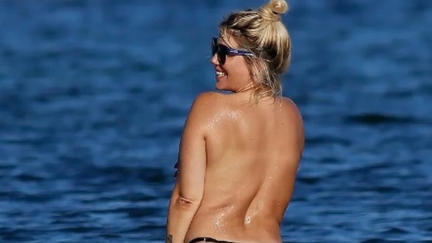 Y, en medio de un duro verano, con con temperaturas que llegan a los 45 grados, Wanda se animó al topless y posando para los paparazzis.